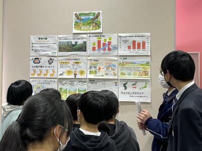赤谷センター様の運営するクラフト教室では、環境省 谷川管理官事務所の皆様とも協力し、森のかけらストラップ作りの補助を行いました。また、本校「シカ・オオカミ班」の生徒が探究成果をポスター掲示し来場者へ説明しました。