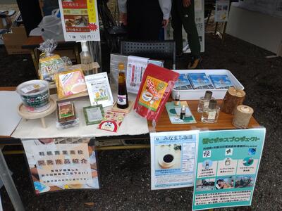 「桑茶ブース」では、2学年普通科の生徒9名が「みなかみふるさと創生学」の授業の一環として、高崎商科大学萩原研究室と共同制作した「桑茶パウダー」を販売しました。