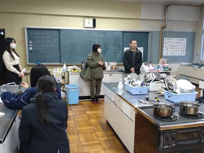 12月17日に、家庭科室にて昭和村のコーヒーショップ「RaBi」の村上百合子様が製作した桑スイーツの試食会が行われました。