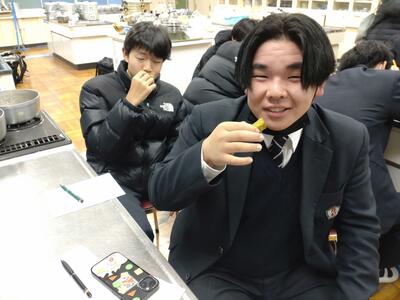 創生で桑茶を製作した生徒や販売甲子園に参加した生徒たちは、桑クッキーや桑ケーキを試食し、「桑の香りが感じられる!」や「こっちのケーキの方が好き!」等と感想を言い合っていました。