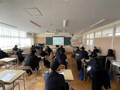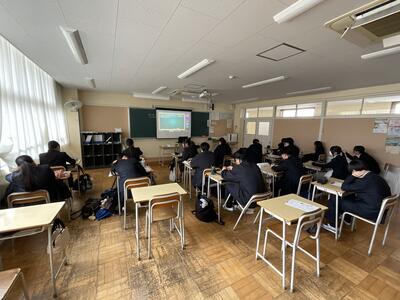 本番さながらの模擬面接を体験するとともに、丁寧なアドバイスや温かい激励の言葉をいただきました。生徒にとって、自らの課題を見つめ直し、自信を高める大変有意義な時間となりました。今回の学びを生かし、本番に向けて前向きに取り組んでいきます。